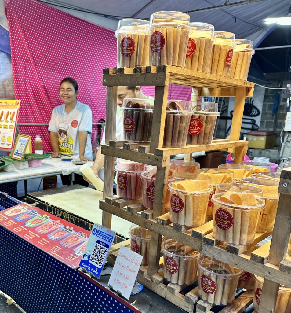 Food was definitely a highlight of my time at the Hua Hin Night Market! I made it my mission to try as many different things as possible. The durian was… an experience, let’s just say. The pungent smell was intense, but the creamy texture and unique flavor were something else. I wasn’t a fan of durian, but when in Thailand, you need to try it. I also had some strawberry and coconut roti, which was a sweet treat, and the crispy butter, well, that was just plain addictive. I loved being able to sample so many different flavors from the various vendors, each stall offering something unique and delicious.